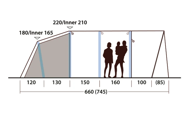 | 2 slaapcabines, 1 woongedeelte | Rigid Air System-frame voor snel en gemakkelijk opblazen |